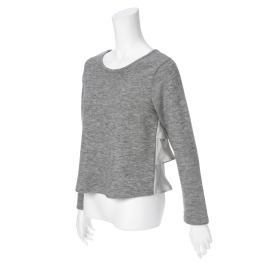 後ろ身頃にティアード状に配したサテンのフリルが目を惹く、長袖プルオーバーです。■身頃:身生地にはウォーム感のあるアクリル混のカットソーを使用。