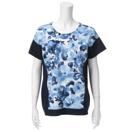 ココンライフ ドゥ接触冷感フラワープリント切替半袖プルオーバー