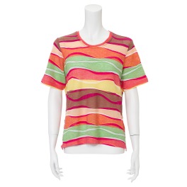 身生地に綿素材を使用した、軽やかでさらりとした肌触りのプルオーバーです。波形ボーダーと華やかな色合いで表情豊かなアイテムに仕上げました。
