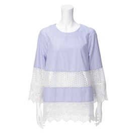 ナラカミーチェコットンツイル襟レース七分袖シャツ