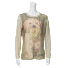 シカレロラメニット転写プリント長袖プルオーバー