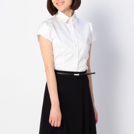 表面感のあるコードストライプ生地を使用した半袖シャツです。花びらを重ねたチューリップのようなお袖が、着こなしをかわいらしく演出します。