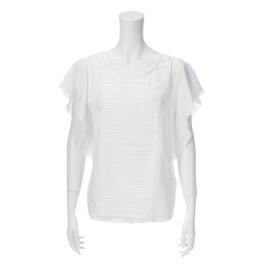 アンリック オー ブルー刺しゅうレースアクセントバタフライスリーブブラウス