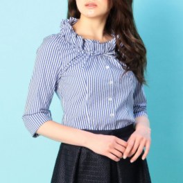 フロントのフリルが極上の女性らしさを醸し出す七分袖シャツです。襟部分とカフスの折り返した部分に、当ブランドで“ピエゴリーネ”と呼ばれるピンタックをほどこしました。