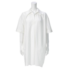フレアコットンドロップショルダー五分袖シャツワンピース