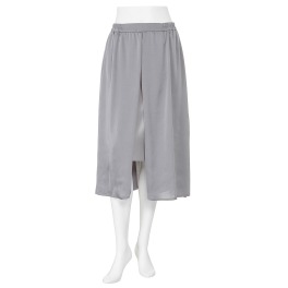 異なる素材とシルエットを組み合わせたマント風スカートです。ジャージー素材のタイトスカートに、布帛生地をマントのように組み合わせたデザイン。