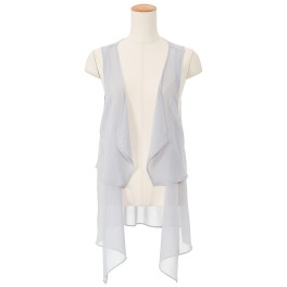 アキコ カワダフェイクレザー&シフォンコンビネーションジレ