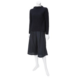 ブージュルードボトルネックニットプルオーバー&ストライプ柄ガウチョパンツ