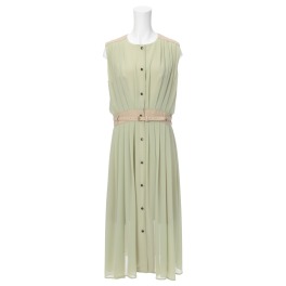 フーアウエストベルト付シフォンノースリーブワンピース