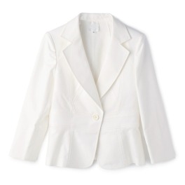 ■身頃:綿とポリウレタンをミックスした、ストレッチ性のあるしなやかな素材を使用。安心感のある着丈で、腰高に見えるよう、裾のラインはラウンドさせたデザインに仕上げました。