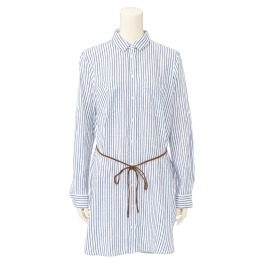 マンゴベルト付ストライプ柄シャツワンピース