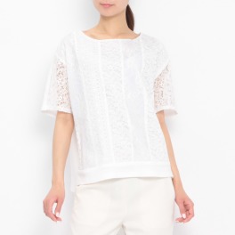 アンリック オー ブルーパッチワークレース切替半袖プルオーバー