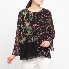 フレンチコネクションボタニカル柄プリーツアクセントブラウス