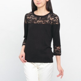 元町ゼラールレース切替七分袖ニットプルオーバー