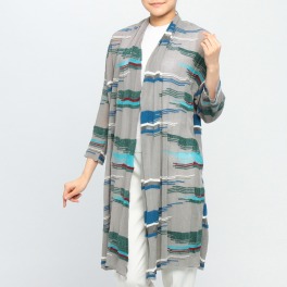 フラワープリントをほどこしたロングカーディガンです。共布ベルト付きで、メリハリのある着こなしをお楽しみいただけます。