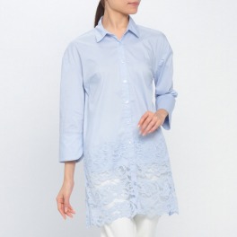 シルバーミントシュガーレースアクセントロングブラウス