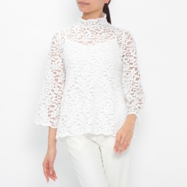 マンゴ総レースハイネックブラウス