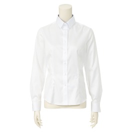 ■身頃: ベース素材にはコットンとポリウレタンの混紡素材を使用。ハリ感のある生地組成のため、きれいな印象ながらもストレッチ性があり、動きやすい仕上がりです。