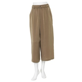 共布ベルトがアクセントになった、とろみ感たっぷりのワイドパンツです。ウエストは総ゴム仕様なので、楽で快適なはき心地。