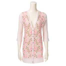 クリス・セリーンフラワーレース切替七分袖ニットカーディガン