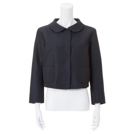 当ブランドオリジナルの素材を使用した、微光沢のきれいなオックス織ジャケットです。コンパクトな丸襟と比翼仕立てのデザインにすることで、上品な印象に仕上げました。