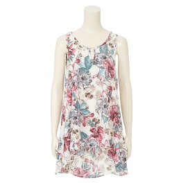 ダジュールオパール加工フラワープリントチュニックプルオーバー