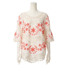 軽やかで柔らかな素材とレースを組み合わせた、存在感のあるデザイン。ゆとりのあるAラインのウエストシルエットが、気になるボディーラインをカバー。