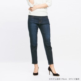 ■身頃:やや細めのテーパードシルエットに設定。太ももとお尻部分にゆとりを持たせ、膝から下が細くなる美脚効果が期待できるラインです。