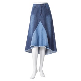 ■身頃:前身頃にスラブデニムを用いて、後ろ身頃にニットタッチのデニムを使用したデザイン。異素材を用いることによって、色味に絶妙な違いが出て上級なおしゃれ感を演出。