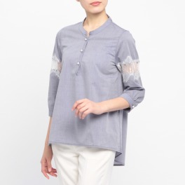 シルバーミントシュガーケープ調フリル刺しゅうアクセントブラウス