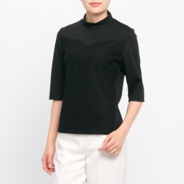 ル サローネ美濃和紙混レース切替ハイネックプルオーバー