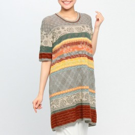 当ブランドで人気のエスニック調の柄がデザインされたニットワンピースです。カラフルな柄が華やかな印象です。