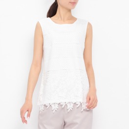 元町ゼラールエンブロイダリーレース切替デザインノースリーブプルオーバー