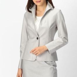 数種の布地を組み合わせた個性的なデザインのジャケットです。ワンボタンの前開きで、上品なフィット感のあるシルエットに仕上げました。