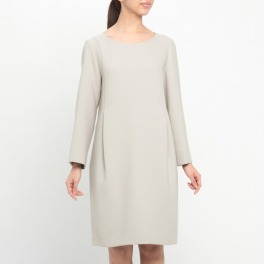 ■身頃:フロントは、デコルテを美しく見せる、女性らしいラウンドネックに仕立てています。後ろ襟はややカーブをつけたやさしいラインで表現した浅めのVラインにし、スタイリッシュな印象に仕上げました。