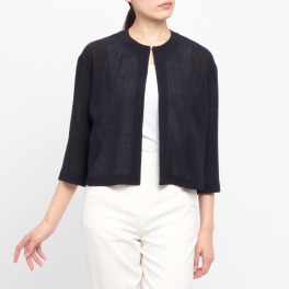 グレースボーリネン調ノーカラー八分袖ジャケット