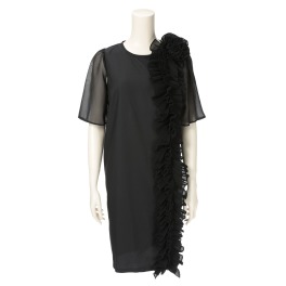 アプローズアンドコーニューヨーク共布コサージュ付プリーツフリルアクセントワンピース