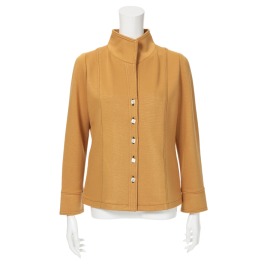 ■身頃: 襟と袖口に幅広のリブニットを配すことで、スポーティーさを演出。軽やかに仕上げるために、一重で端を編み出しています。