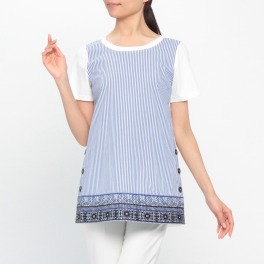 ラヴィーランド異素材切替刺しゅうアクセントチュニックプルオーバー