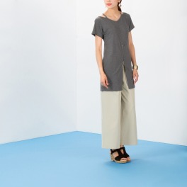 ■身頃: カジュアルすぎずフェミニンすぎない、程良い幅に設定したラウンドネックで、さりげなく腕周りをカバーする袖丈に設定。