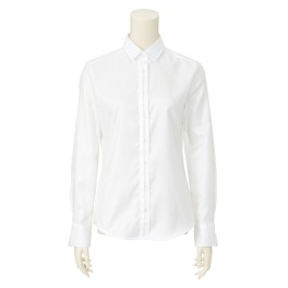 襟ぐりが広く開いた、抜き襟デザインのシャツです。さらりとしたなめらかな肌触りが特徴の、光沢感のあるシャンブレー素材を使用。