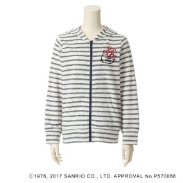 ■身頃: 杢調ボーダーデザインの裏毛生地を使用。 胸元と背面に、ハローキティをフロッキープリントで描いたデザインです。