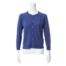 プールトレファムシルクアイレットアクセント八分袖カーディガン