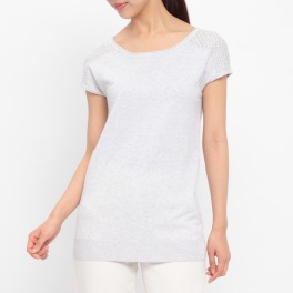 シルバーミントシュガーストレッチレース切替チュニックプルオーバー