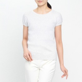 プールトレファム人気イタリア糸ケーブル編フレンチスリーブプルオーバー