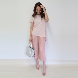 フーアパウダーサテンプリーツデザインガウチョパンツ