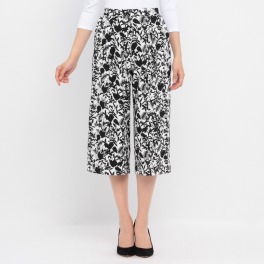 フラワープリントをほどこした、ほどよいゆとりのあるワイドパンツです。ストレッチ性があるので動きやすく、しなやかな肌触りで快適なはき心地。