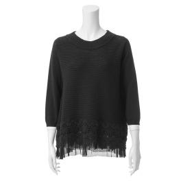 インデックスマジックコットンレースアクセントラウンドネックニットプルオーバー