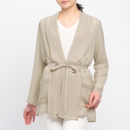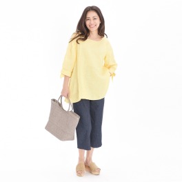 ■身頃:伸縮性があるスムース素材を使用。歩くたび軽やかに揺れる、女性らしいドレープ性が特徴です。糸に撚りをかけることで、着用時シワになりにくいのもポイント。