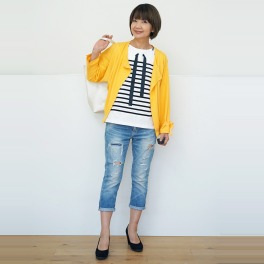エンメ・エイックスリネンボーダー切替長袖カーディガン